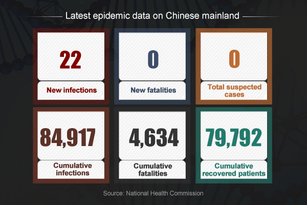 - Chinese mainland reports 22 new COVID-19 cases, all imported cases